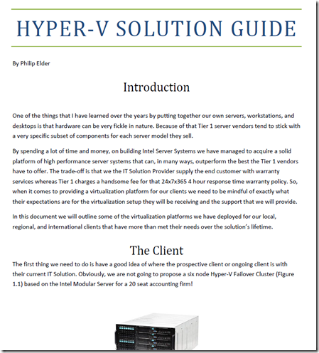 I walk through a number of critical areas in this guide relative to deploying a properly sized Hyper-V virtualization solution.